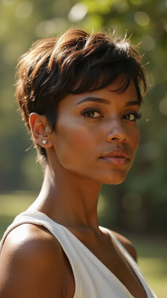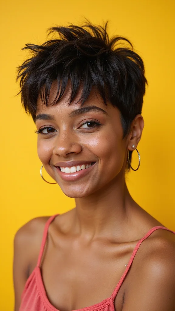 A pixie cut enhanced with layers and highlights strikes a balance between texture and brightness. This style adds depth and dimension, showcasing the natural beauty of your hair. It’s perfect for those wanting to bring their hair to life with some color and movement.To achieve this look, use a light conditioner to keep hair hydrated and shiny. Regular trims will help maintain layers and prevent split ends. Highlights and lowlights can enhance texture, adding to the overall aesthetic. This look not only enhances your style but also promotes hair health through regular care.- Use light conditioner for hydration
