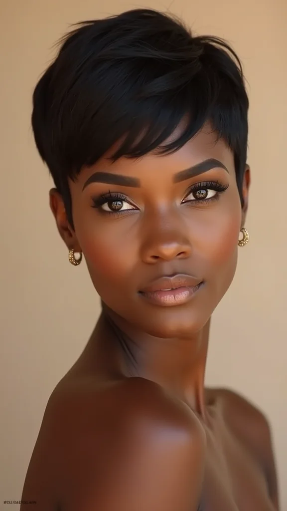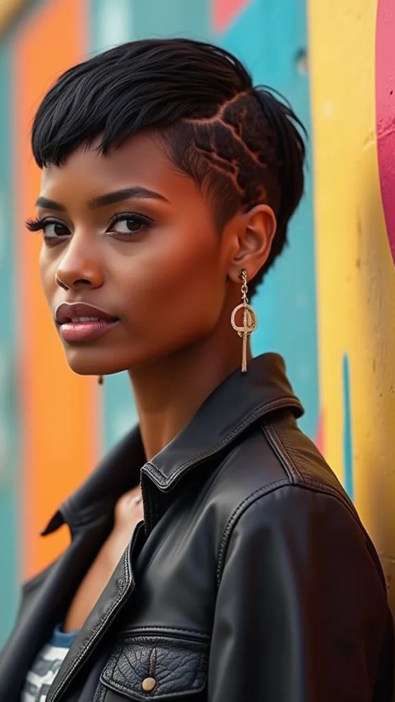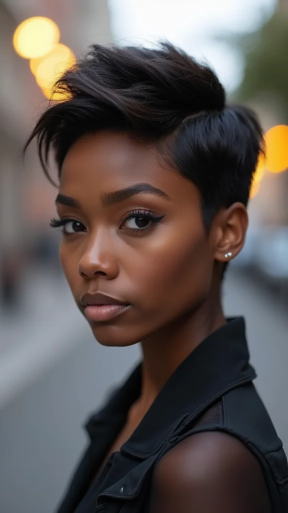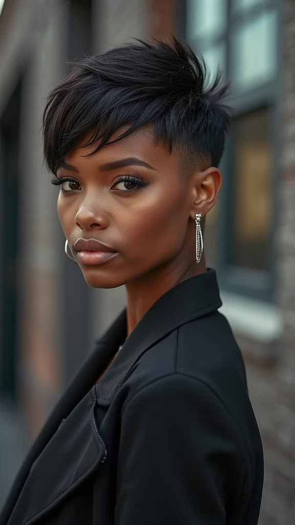 A bold pixie cut with sharp edges showcases your style and confidence! This look features precise cuts that create a clean and striking appearance. It’s ideal for women who love fashion and want their hair to reflect their strong personality.To keep this style looking sharp, use a strong-hold gel or pomade for definition. Regular trims every 3-4 weeks will keep those edges neat. A shine spray can add a glossy finish, making your hair pop. This bold pixie cut encourages regular maintenance, promoting healthy hair along the way.- Use strong-hold gel for definition
