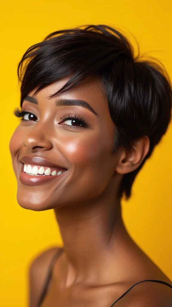 For a polished appearance, a sleek and shiny pixie cut is the way to go. This style features a smooth finish and can be styled with gel or serum for ultimate shine. It’s a versatile look, ideal for everything from office meetings to evening outings.To achieve this sleek style, use a flat iron for smoothness, but don’t forget to apply a heat protectant first. A lightweight serum can add shine without greasiness, keeping your hair looking fresh. Regular trims every 4-6 weeks are key to maintaining both shape and health. This chic look will keep you feeling confident and elegant.- Use heat protectant before styling