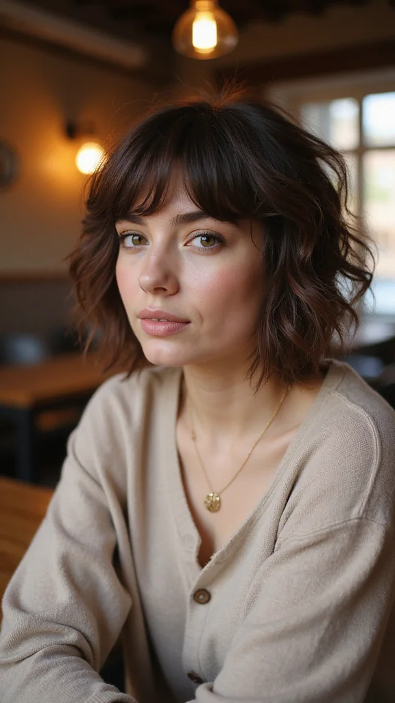A textured bob with side bangs creates a playful yet flattering style for round faces. This haircut features soft layers that add movement, making your hair feel lively. Side bangs beautifully frame your face, softening your features while adding a modern edge. This look is popular on social media and gives you a fresh, fun vibe.