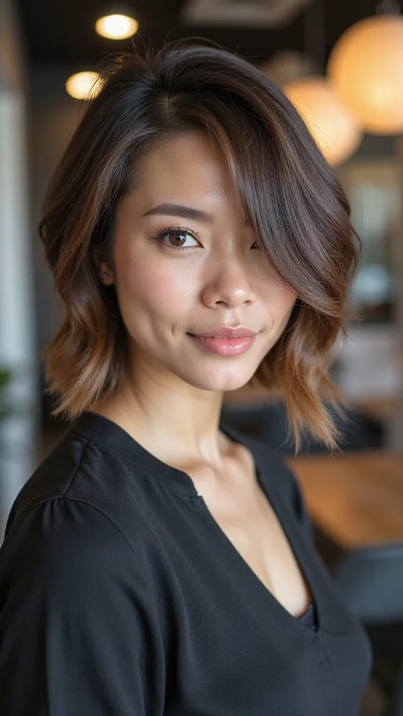 Achieve this look with a texturizing spray or by scrunching your hair with your hands. This bob is perfect for any setting, from casual outings to date nights, ensuring you always look effortlessly chic and put together.