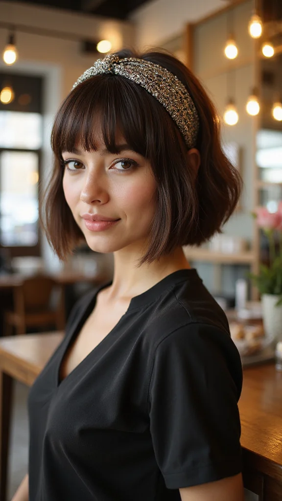 Using a headband with your bob can instantly elevate your hairstyle, making it chic and stylish. This accessory adds a sophisticated touch while keeping your hair in place. You can wear your bob sleek or slightly messy, and the headband adds an interesting focal point to your look.