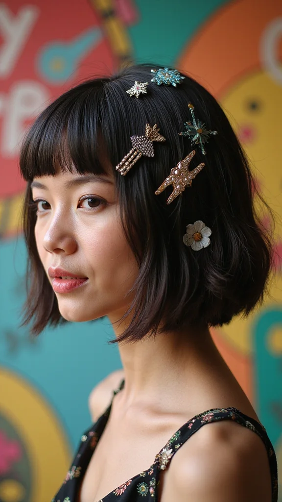 ❝ Fun fact: 72% of people say a bold accessory instantly makes bob haircuts for round faces look longer. Clips, pins, and scarves lift the eye and soften the jawline. Try a statement piece to personalize your bob and boost its shape today.