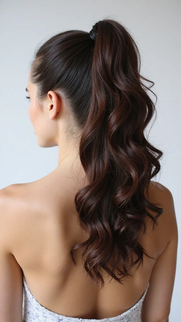 To style, gather your hair high and secure it with an elastic band, leaving the ends free to curl. Use a curling wand to enhance the curls for a polished finish. A smoothing serum can help keep flyaways at bay, making you feel put-together and stylish for any event.