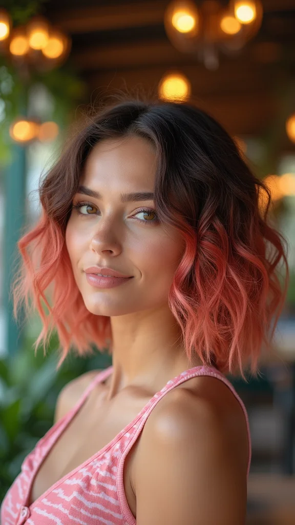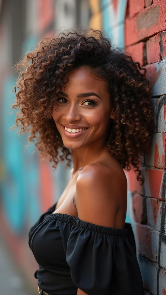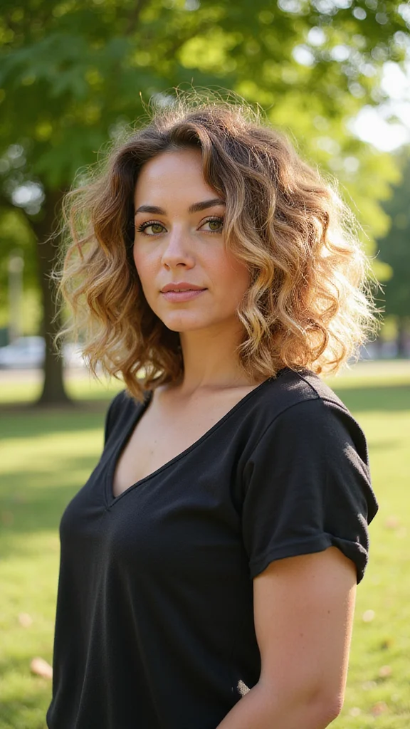 For this look, opt for a balayage technique for a natural effect. Keep colors within a few shades of your natural hair for a harmonious blend. Use a curl enhancer to keep your locks bouncy and lively, refreshing your overall style effortlessly.