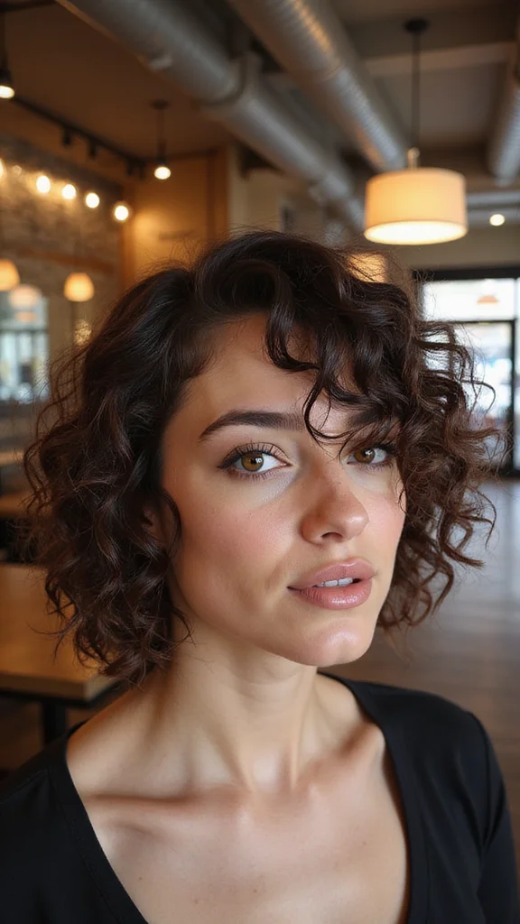 Chin length a line bob magic happens when curls bounce in graduated layers. It’s a relatable twist for curly hair lovers who want volume without sacrificing face framing. Pro tip: Ask your stylist for soft caramel highlights to bring the layers to life.
