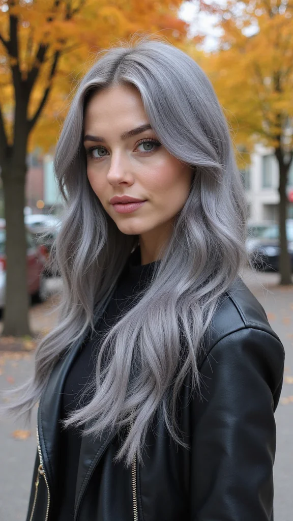Frosted lavender adds a soft, ethereal touch to your fall look. This light color combines pastel purple and grey for a dreamy appearance that exudes charm. Imagine yourself floating gracefully through autumn with this unique shade that captures attention without being overwhelming.