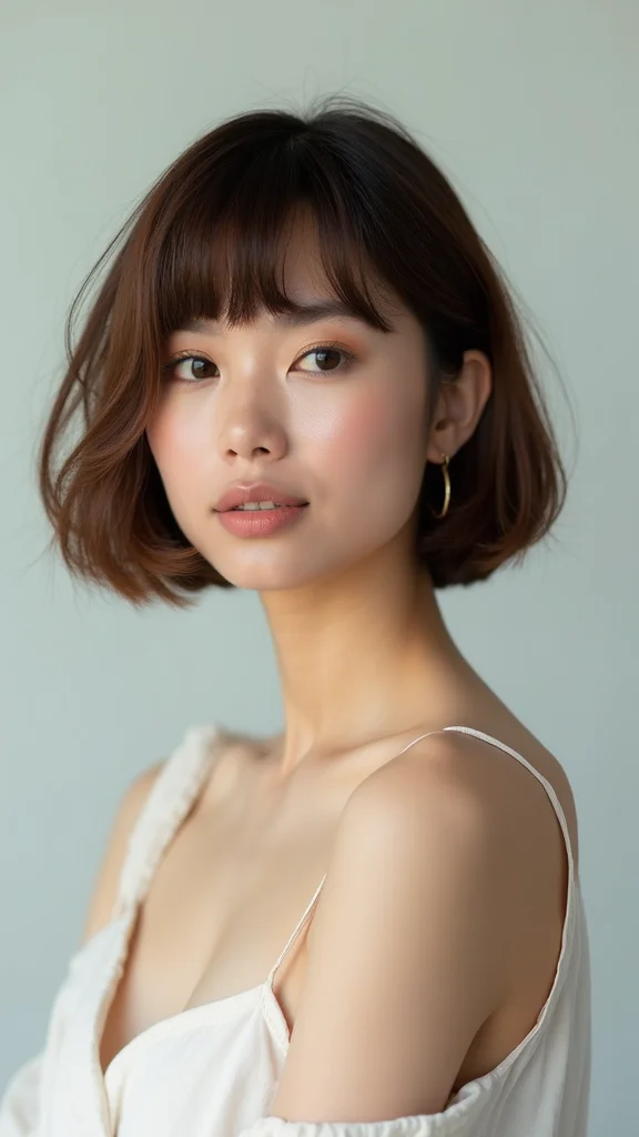 The schoolgirl bob is a fun, youthful cut that revisits classic styles with a modern twist. With blunt ends and short bangs, this hairstyle feels playful and fresh.