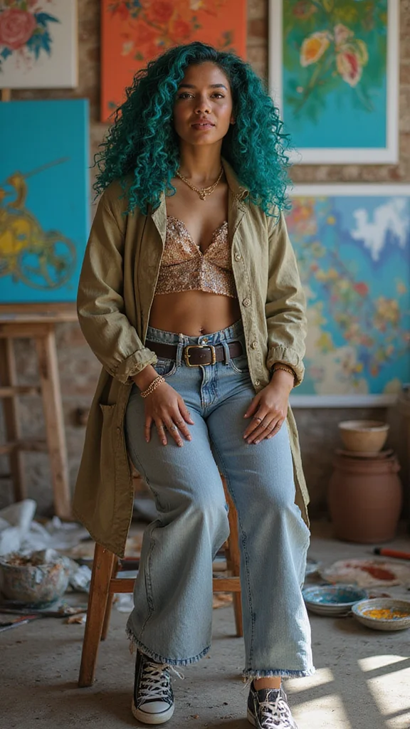 – High-waisted jeans or a playful skirt
