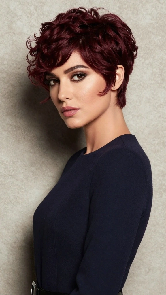 Burgundy is a rich color that adds depth and sophistication to short pixie curls. This elegant shade highlights the shape and texture of your curls, providing a modern yet classic look. Burgundy is particularly flattering on warmer skin tones, creating a stylish appeal.