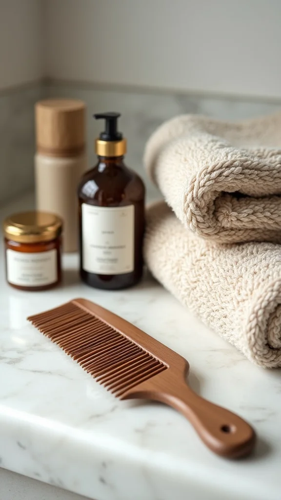 A wide-toothed comb helps detangle without pulling. A leave-in conditioner adds moisture and protection. Rinse with cool water to seal the cuticle and lock in shine.