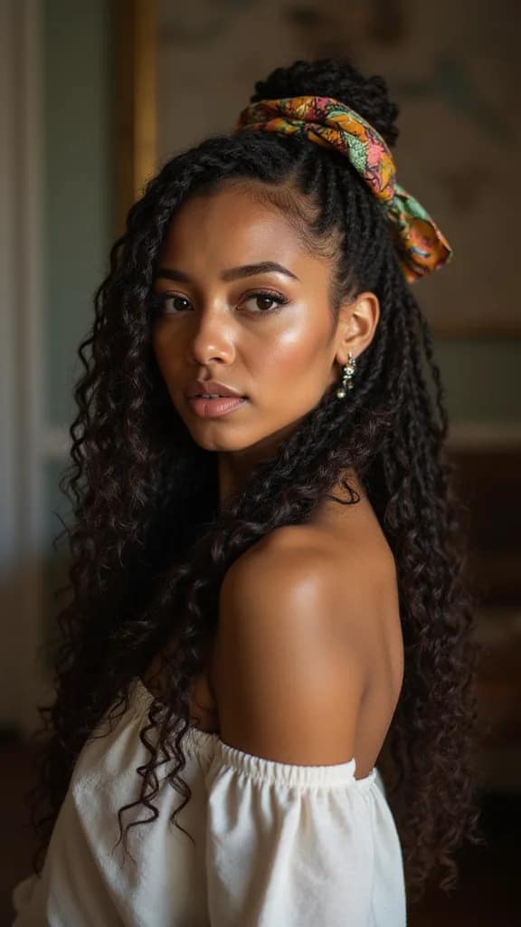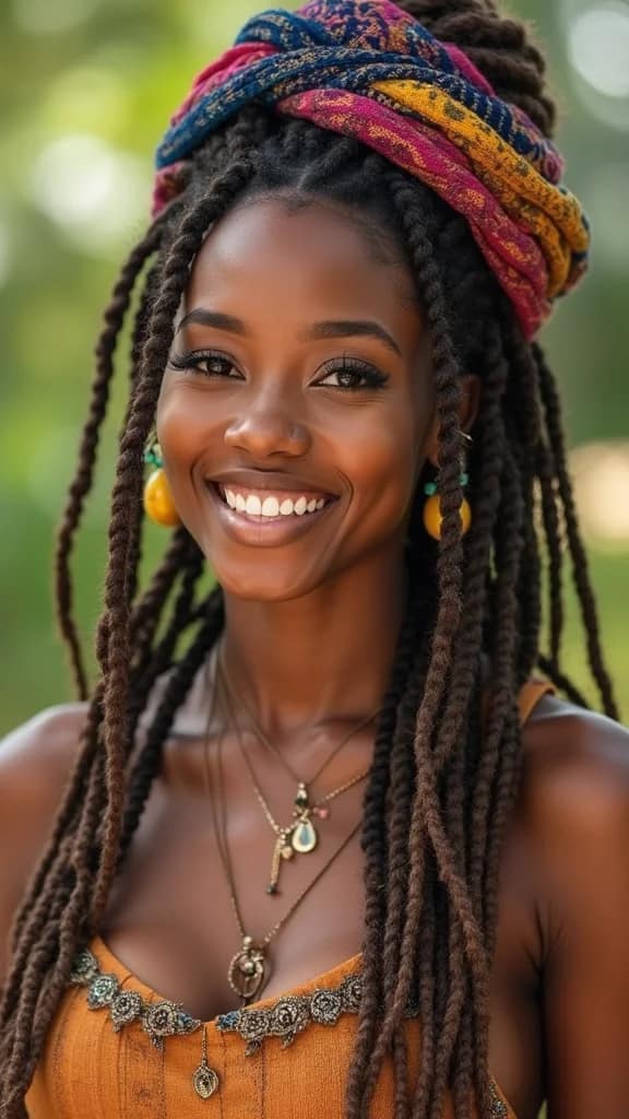 Hair wraps add flair and character to your locs. Choose colorful fabrics and wrap them around for a boho vibe, making it perfect for festivals or casual outings!