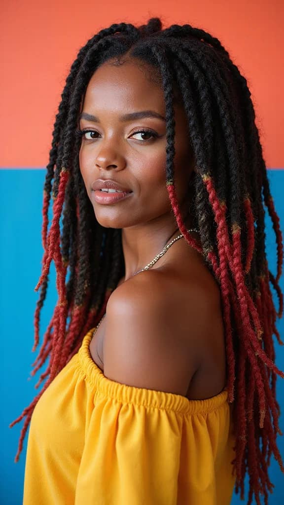 Color-blocking is a bold trend that looks fantastic in dreads! Choose two or more contrasting colors and apply them in blocks throughout your locs. This eye-catching style showcases your creative side beautifully!