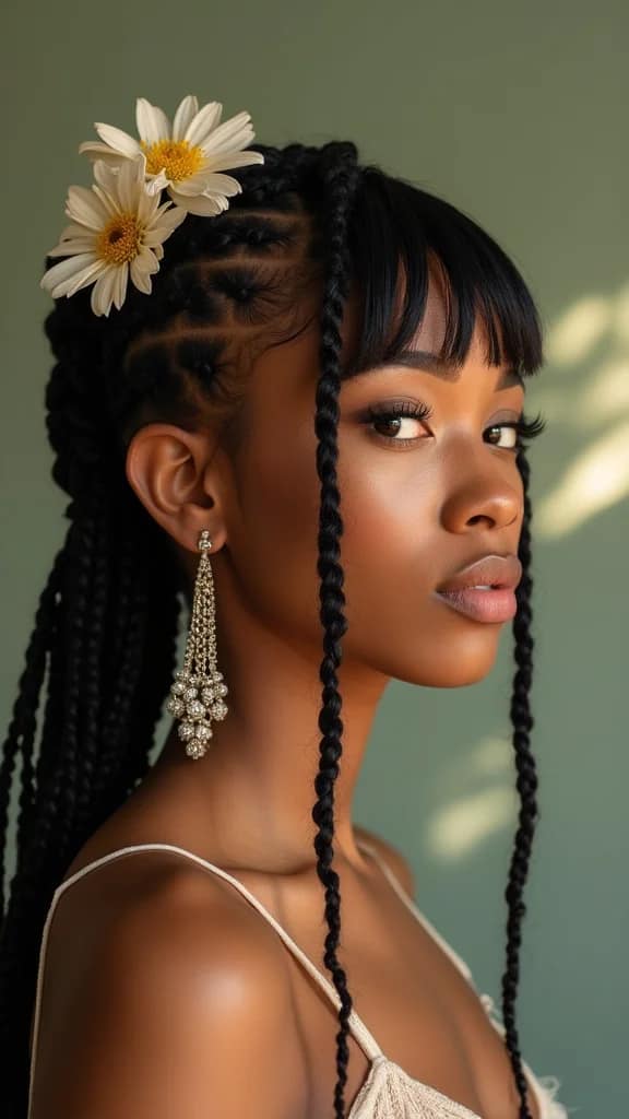 Combining a fringe with a braid creates a lovely and unique look. Keep the fringe smooth while braiding the rest of your locs for sophistication. This style is perfect for special occasions!