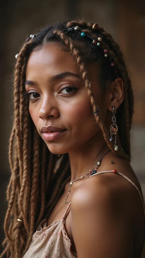 Bohemian beaded dreads bring a playful touch to your locs. Use natural wood beads or colorful ones to create a whimsical vibe. Adding metallic charms can also add a bit of sparkle to your look. This trend has been popular on social media and is great for those who love a free-spirited style!