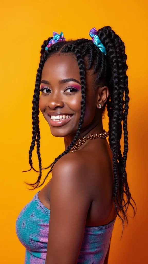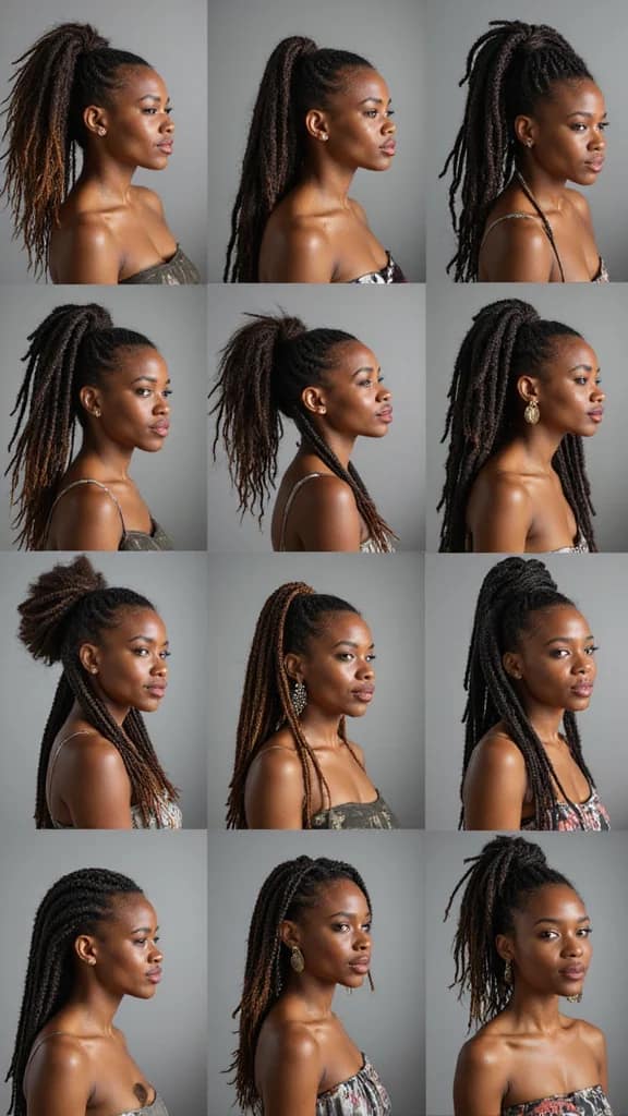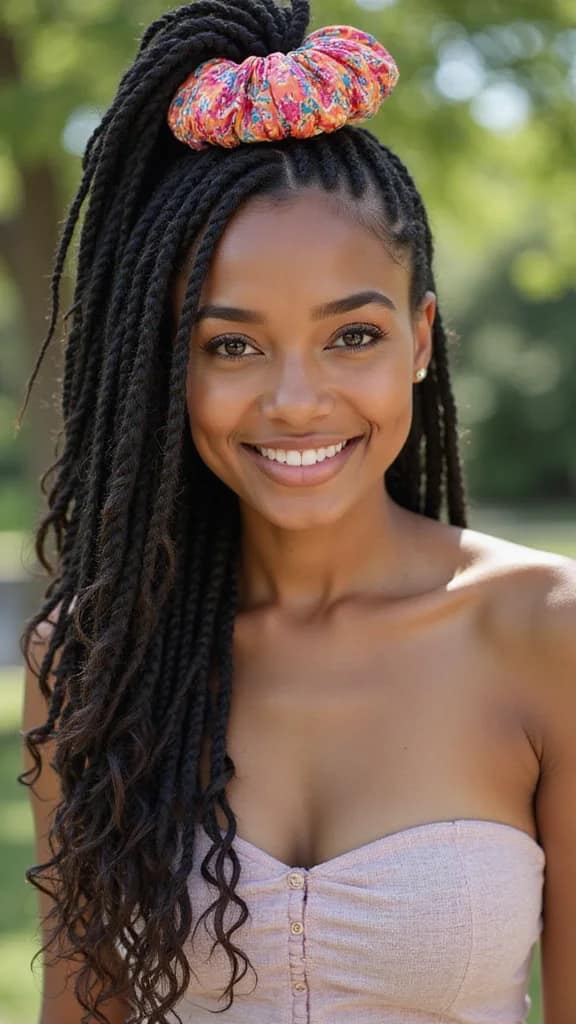 To achieve this style, use colorful scrunchies that match your outfit for a fun pop. A small braid at the front can add a chic touch. Keeping your locs moisturized will help maintain their shine. This style is ideal for those wanting a playful and stylish appearance.