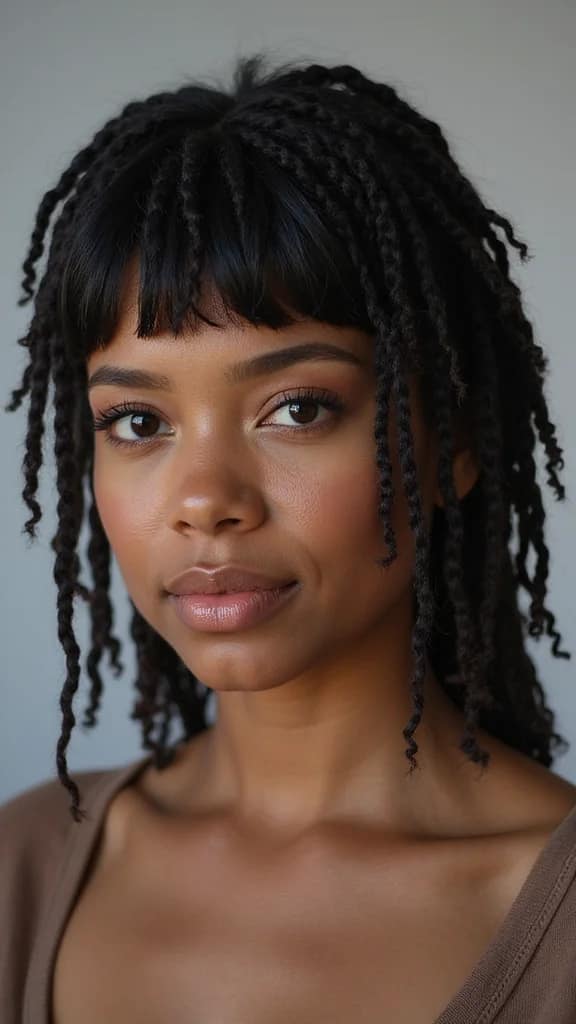 Adding a fringe to your locs can completely transform your look! This style involves cutting a few locs shorter at the front to frame your face. It’s a fun way to switch things up without a drastic change. This hairstyle is trendy and playful!