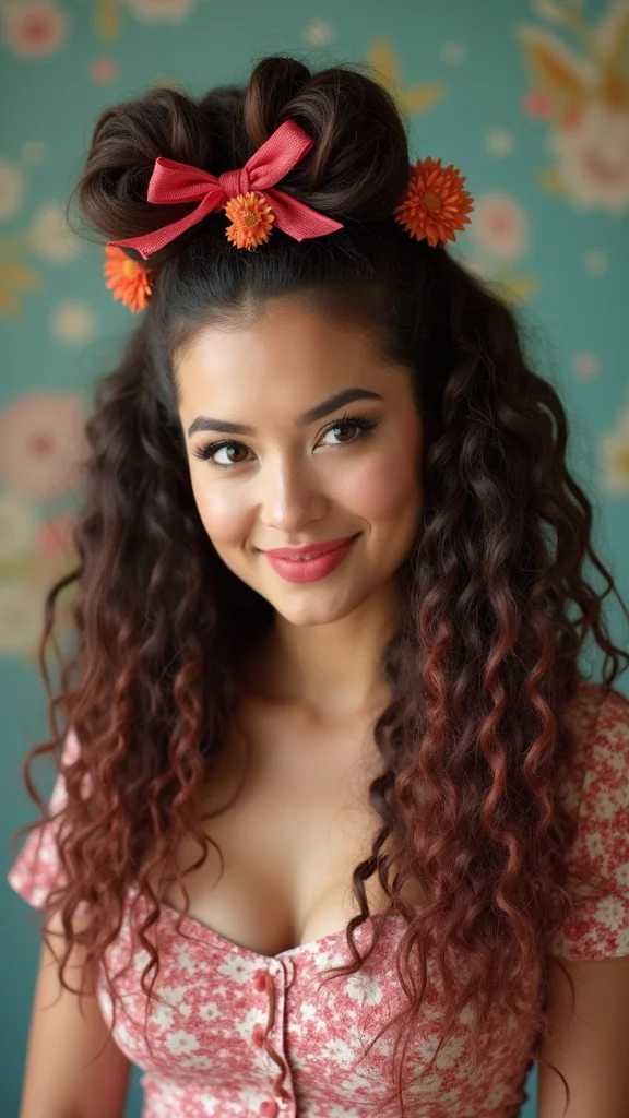 To get the look, use hairspray to hold your curls in place. Adding ribbons or flowers can enhance the playful vibe. Keep your locs hydrated for that beautiful shine. This unique style showcases your locs while offering a fun twist!