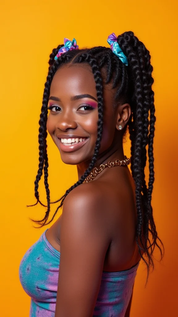 To achieve this style, use colorful scrunchies that match your outfit for a fun pop. A small braid at the front can add a chic touch. Keeping your locs moisturized will help maintain their shine. This style is ideal for those wanting a playful and stylish appearance.