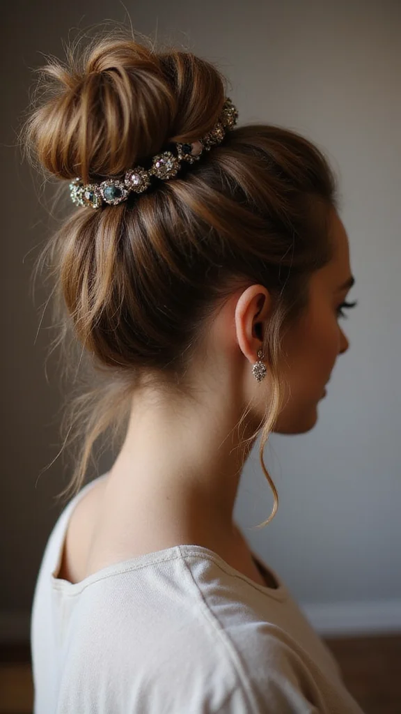 The messy bun is a go-to style that never goes out of fashion! It’s perfect for those lazy days when you want to look effortlessly chic. Picture a soft, tousled bun with dark or caramel highlights that add depth and dimension. This style is currently trending and celebrated for its relaxed yet put-together vibe.