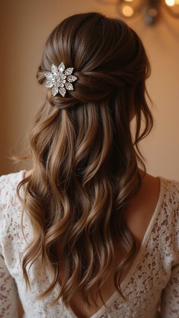 Start by curling the bottom half of your hair while keeping the top straight or slightly wavy. Gather a small section from the front and secure it with a cute clip or hair tie. A light-hold hairspray keeps your style intact while still feeling relaxed. This look can easily transition into a full updo later on!