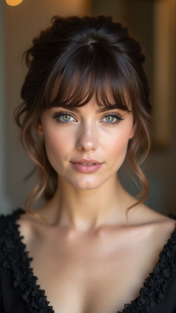 When you want to feel fabulous, a glam updo is the way to go. Start by curling your hair for volume, then roll sections into a bun and secure with pins. Let your bangs drape naturally for a soft touch.