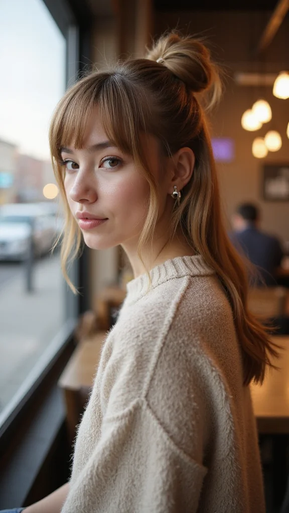 Lightly curl the loose hair before styling for added texture. This look is great for coffee runs or casual outings, blending comfort and style effortlessly.