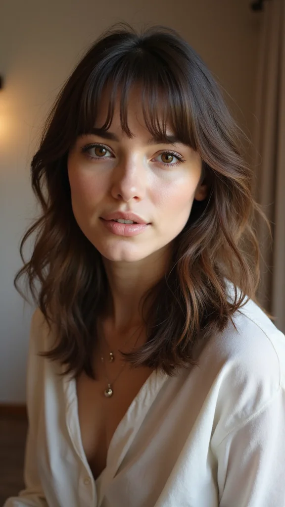 Fun fact: Wispy bangs with soft layers boost volume in a medium hairstyle with curtain bangs—no heaviness, just movement. Start layers at chin height and seal the look with a light texturizing spray for all-day lift.