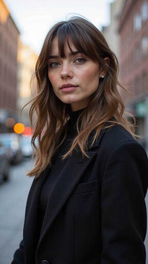 Use a texturizing spray to define the layers without weighing them down. Keep your bangs wispy for a soft, flattering look that frames your face beautifully, perfect for any occasion.