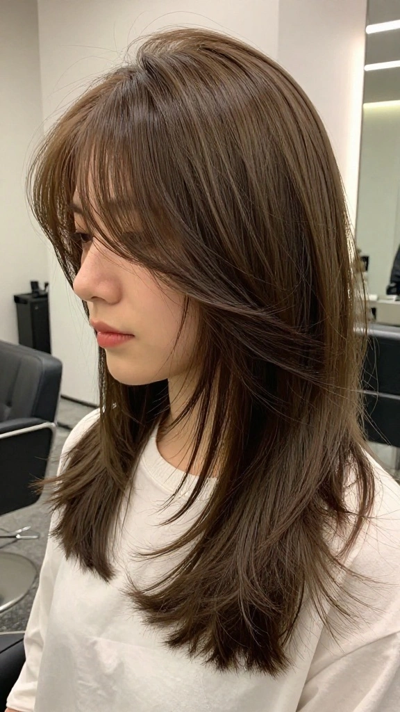 For styling, use a flat iron for a sleek finish while keeping the layers intact. A smoothing product will ensure your hair remains shiny and healthy.