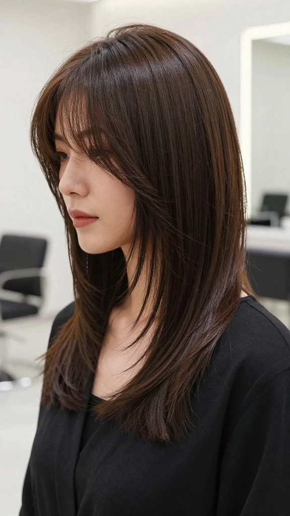 Ask for slightly uneven, wispy layers and a longer top layer so the shape stays modern on straight strands.