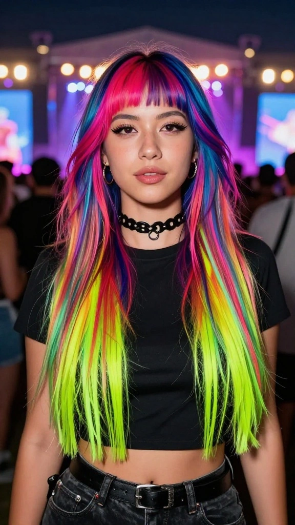 When choosing colors, consult a professional for the best application techniques and use color-safe products to maintain vibrancy. This look is ideal for festivals, parties, or any occasion where you want to shine.