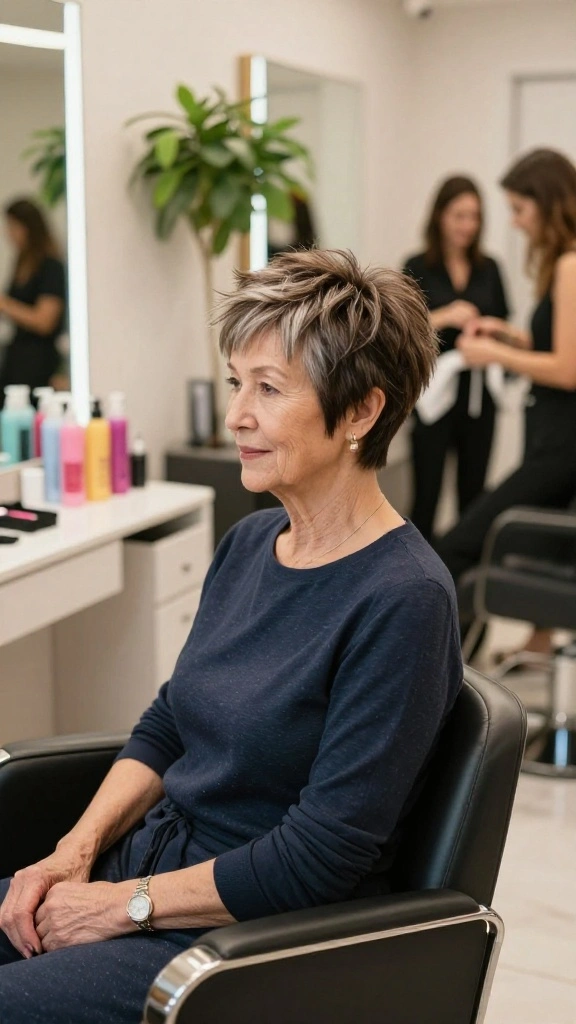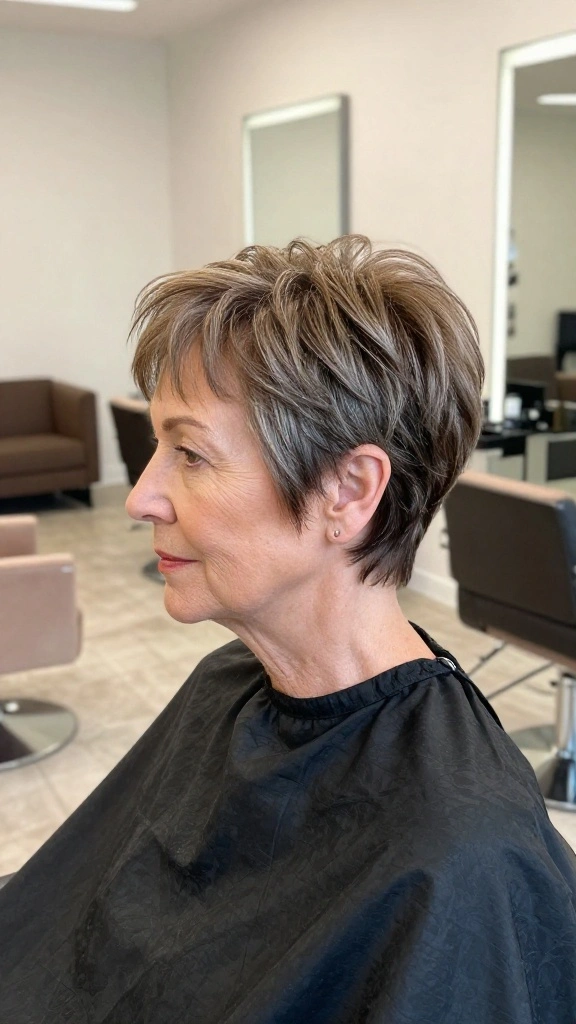 Finish with a nourishing leave-in conditioner or a light serum to prevent dryness and maintain shine without residue. With the right products, this pixie style stays modern on your over 60 hairstyles journey.