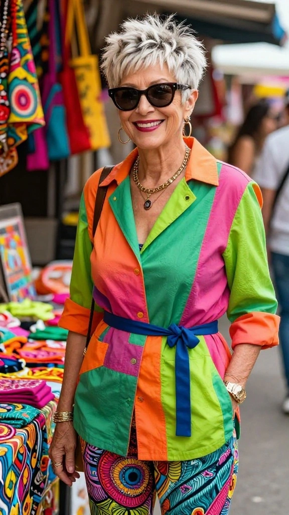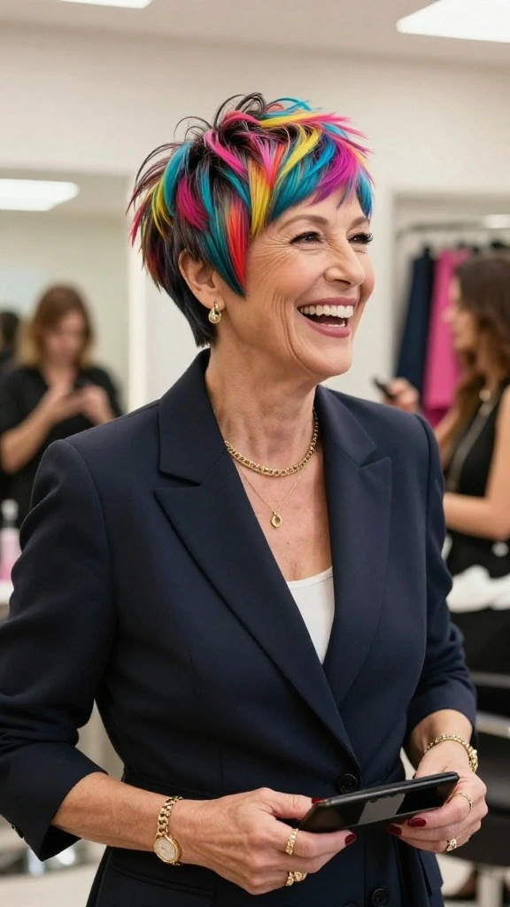 If you’re ready to make a statement, a bold color pixie is the way to go! Whether you choose bright reds, blues, or vibrant purples, this style lets you express your individuality with flair. It’s an energetic hairstyle perfect for women over 60 who want to embrace their vivacious spirit and stand out.