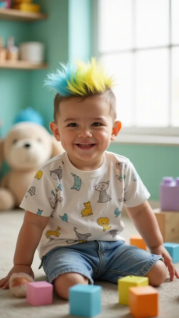 Yes! Adding color accents to your toddler’s mullet haircut can be a fun way to express their personality. Consider using temporary hair chalks or gentle sprays designed for kids, which are easy to apply and wash out. This adds a playful twist without the commitment, making it a perfect choice for adventurous little ones.